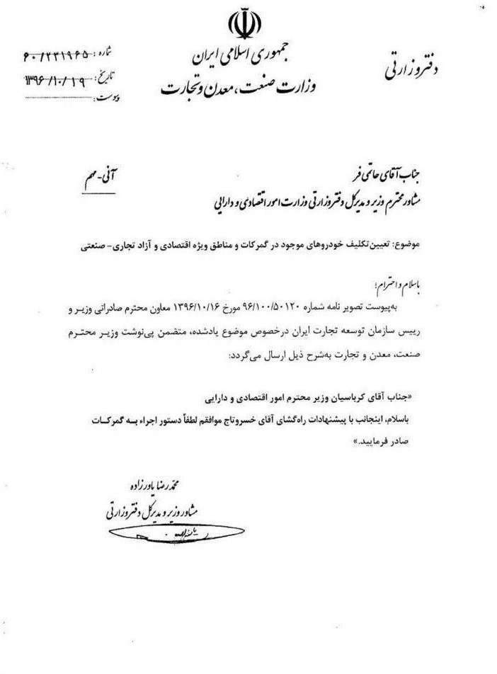 در حال حاضر با نامهنگاریهای انجامشده بین وزرای صنعت و اقتصاد و رؤسای گمرک و سازمان توسعه تجارت بهنظر میرسد خودروهای درگمرکمانده تعیین تکلیف شدهاند.