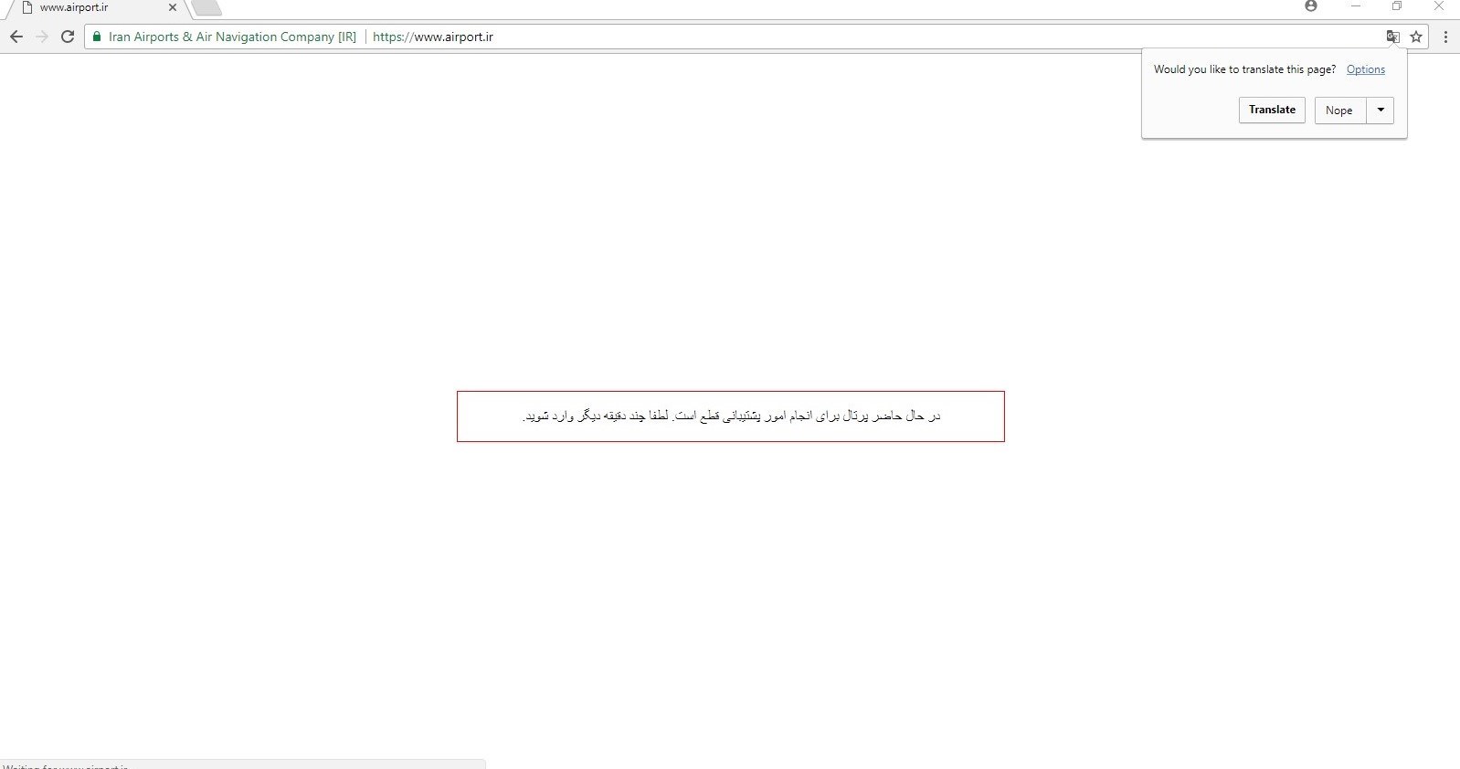 کابران در مراجعه به سایت شرکت فرودگاه‌ها و ناوبری هوایی ایران با این پیغام "در حال حاضر پرتال برای انجام امور پشتیبانی قطع است. لطفا چند دقیقه دیگر وارد شوید" مواجه می‌شوند.