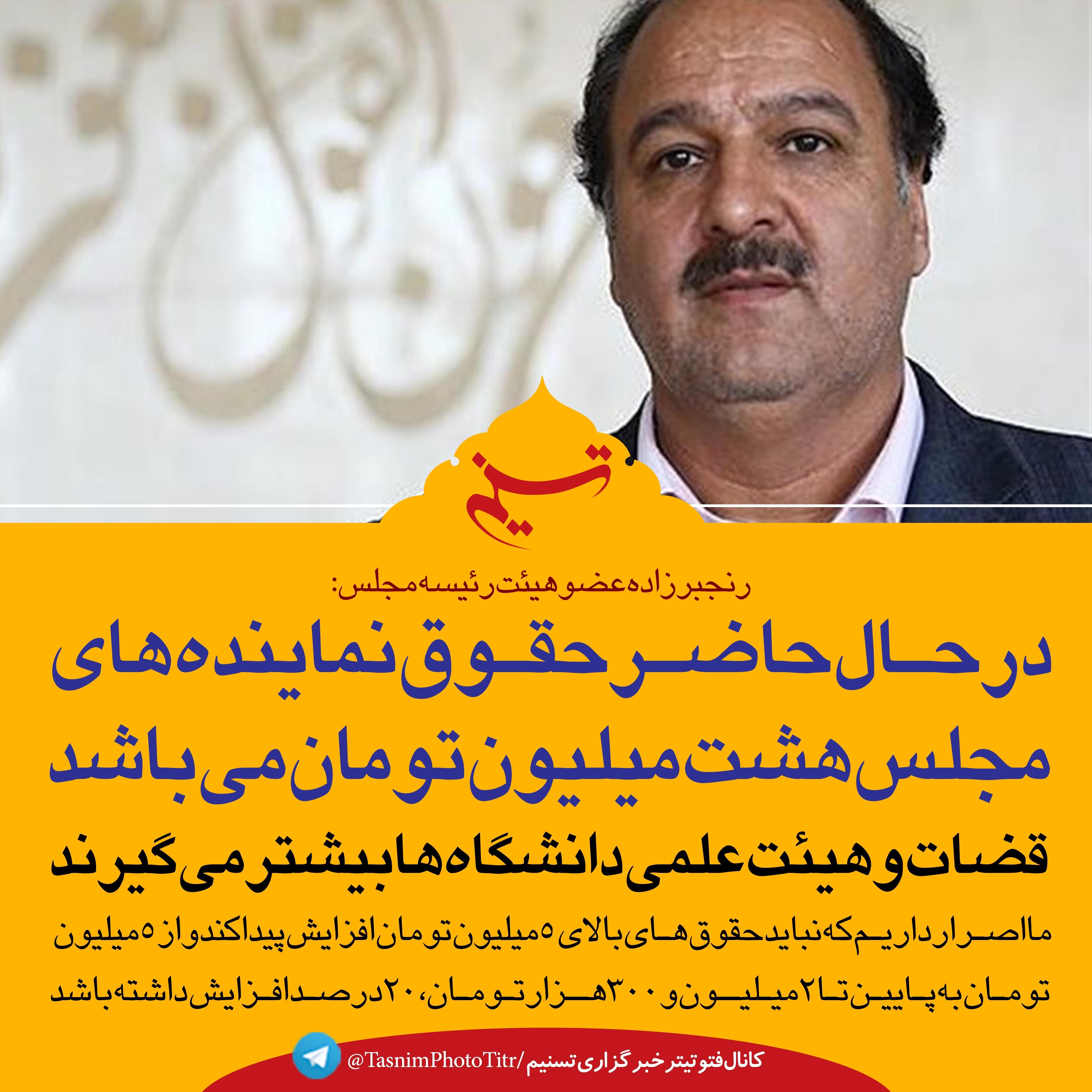 فتوتیتر/رنجبرزاده: درحال حاضر حقوق نماینده های مجلس هشت میلیون تومان می باشد