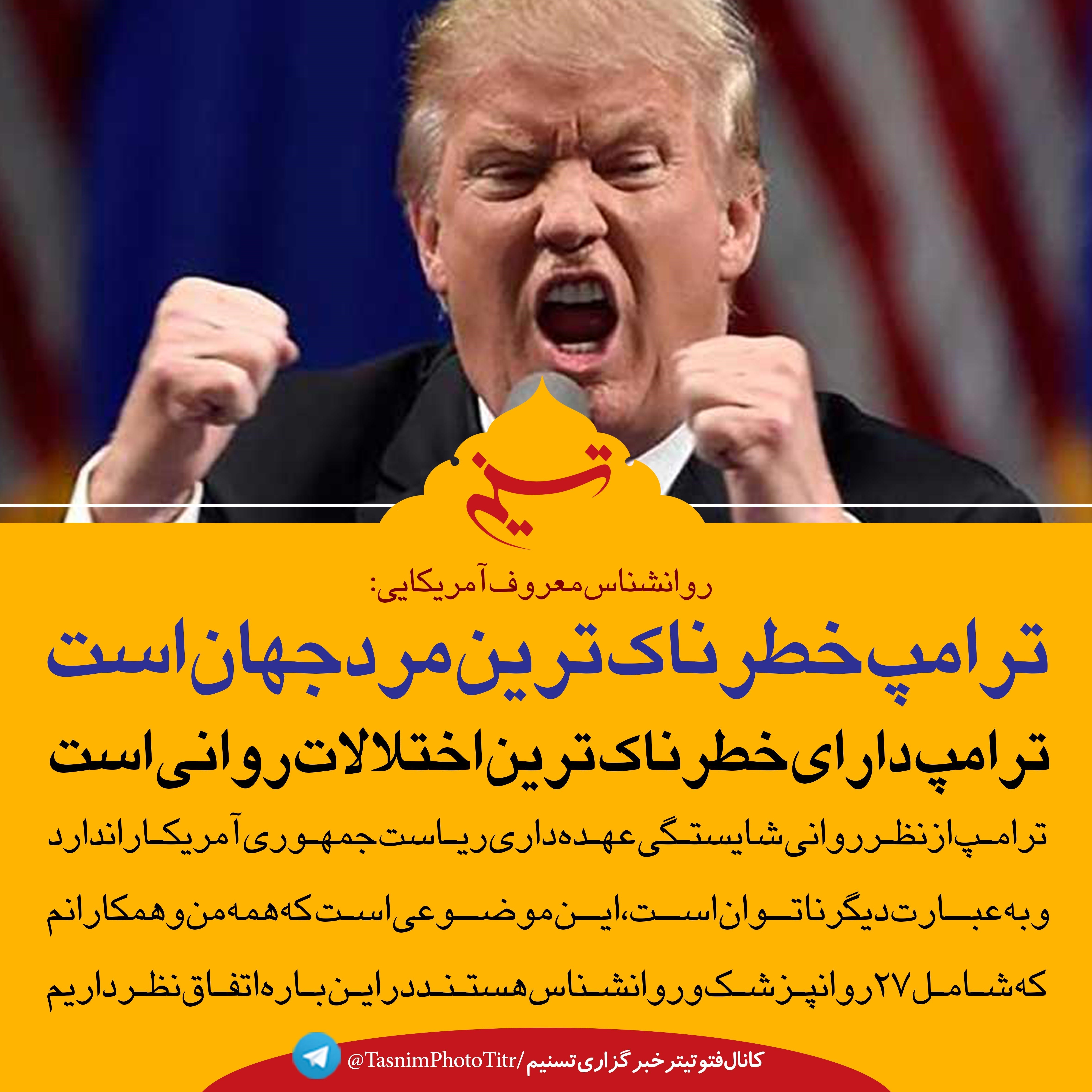 فتوتیتر/ روانشناس معروف آمریکایی: ترامپ خطرناکترین مرد جهان است