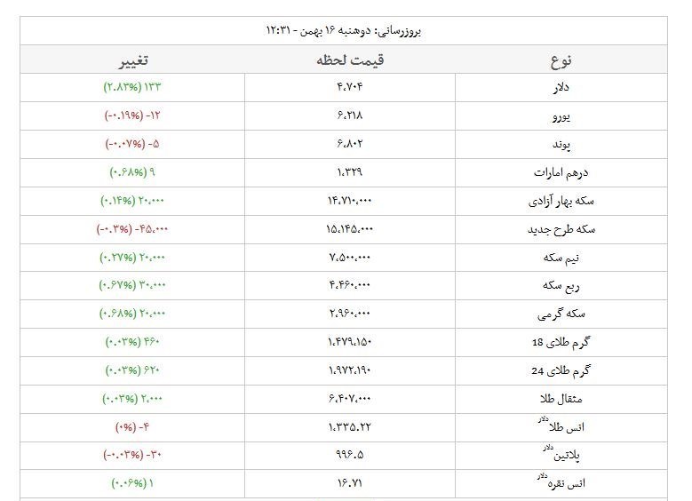 تغییرات لحظهای قیمت دلار، طلا، سکه و ارز را اینجا مشاهده کنید.