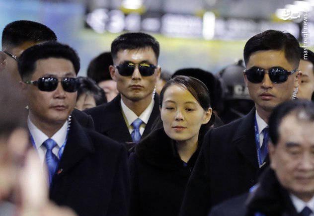 محافظان خواهر رهبر کره شمالی در حاشیه حضور وی در مراسم برگزای مسابقات المپیک زمستانی 2018 در کره جنوبی
