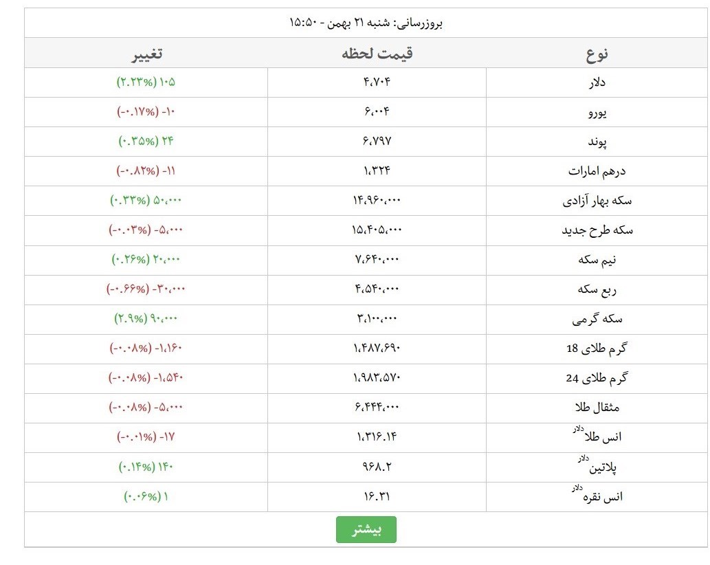 تغییرات لحظهای قیمت دلار، طلا، سکه و ارز را اینجا مشاهده کنید.