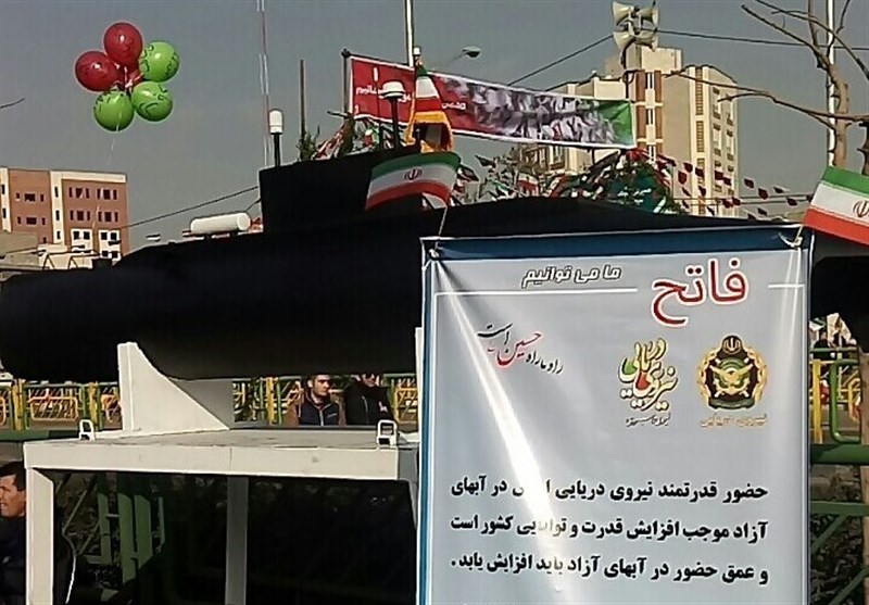 به گزارش خبرنگار دفاعی خبرگزاری تسنیم، همزمان با برگزاری راهپیمایی مردم در تهران، نیروی دریایی ارتش جمهوری اسلامی ایران زیردریایی بومی فاتح را در مسیر راهپیمایی به نمایش عمومی گذاشت.