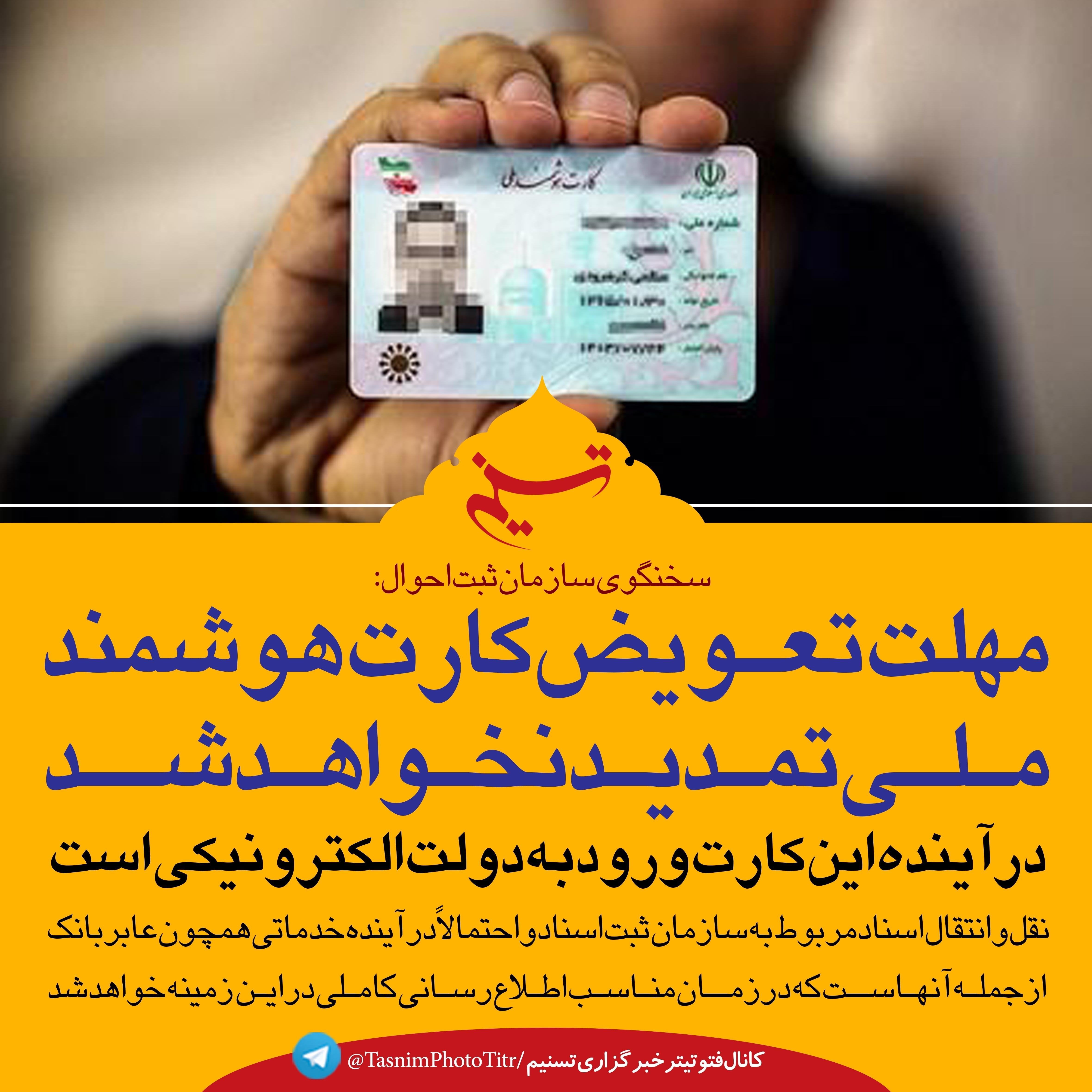 فتوتیتر|سخنگوی سازمان ثبت احوال: مهلت تعویض کارت هوشمند ملی تمدید نخواهد شد