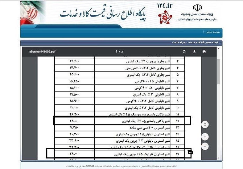 بنابراین گزارش با مراجعه به فروشگاههای زنجیرای میتوان تفاوت قیمت مصوب با قیمتهای موجود در بازار را مشاهده کنیم. بنبار این گزارش در حالی که آخرین قیمتهای مصوب شیر کمچرب و پرچرب با بسته پاکتی (تتراپک)(یک لیتری) 2800 تومان است این محصولات به ترتیب به قیمت 3200 و 3400 توسط برخی برندها به فروش میرسد.