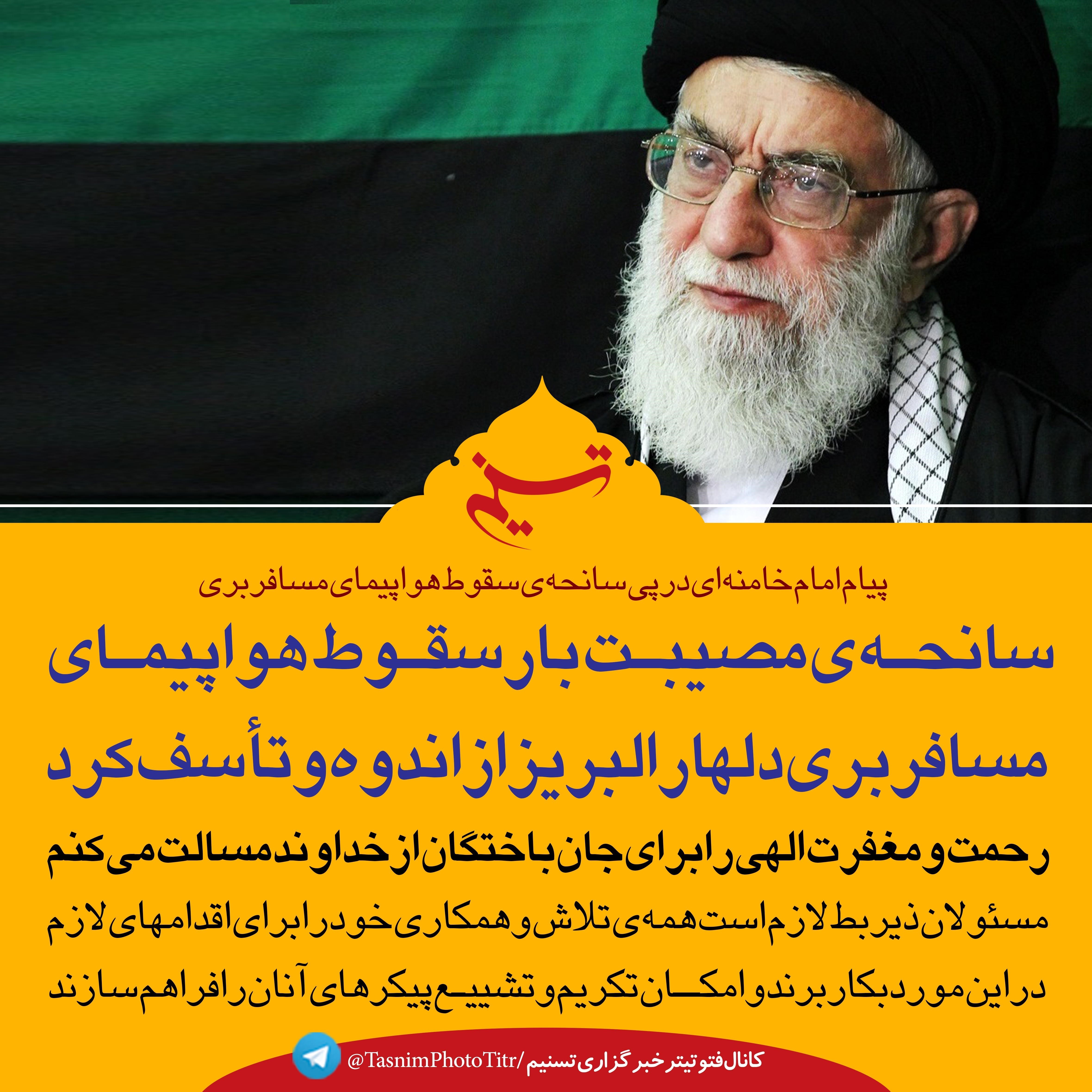 فتوتیتر| پیام رهبر انقلاب اسلامی در پی سانحه‌ی مصیبت‌بار سقوط هواپیمای مسافربری