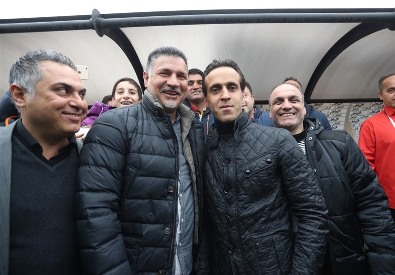 حاشیه دیدار سپیدرود - سایپا| آشتی‌کنان دایی و کریمی در میان تشویق شدید تماشاگران + تصاویر