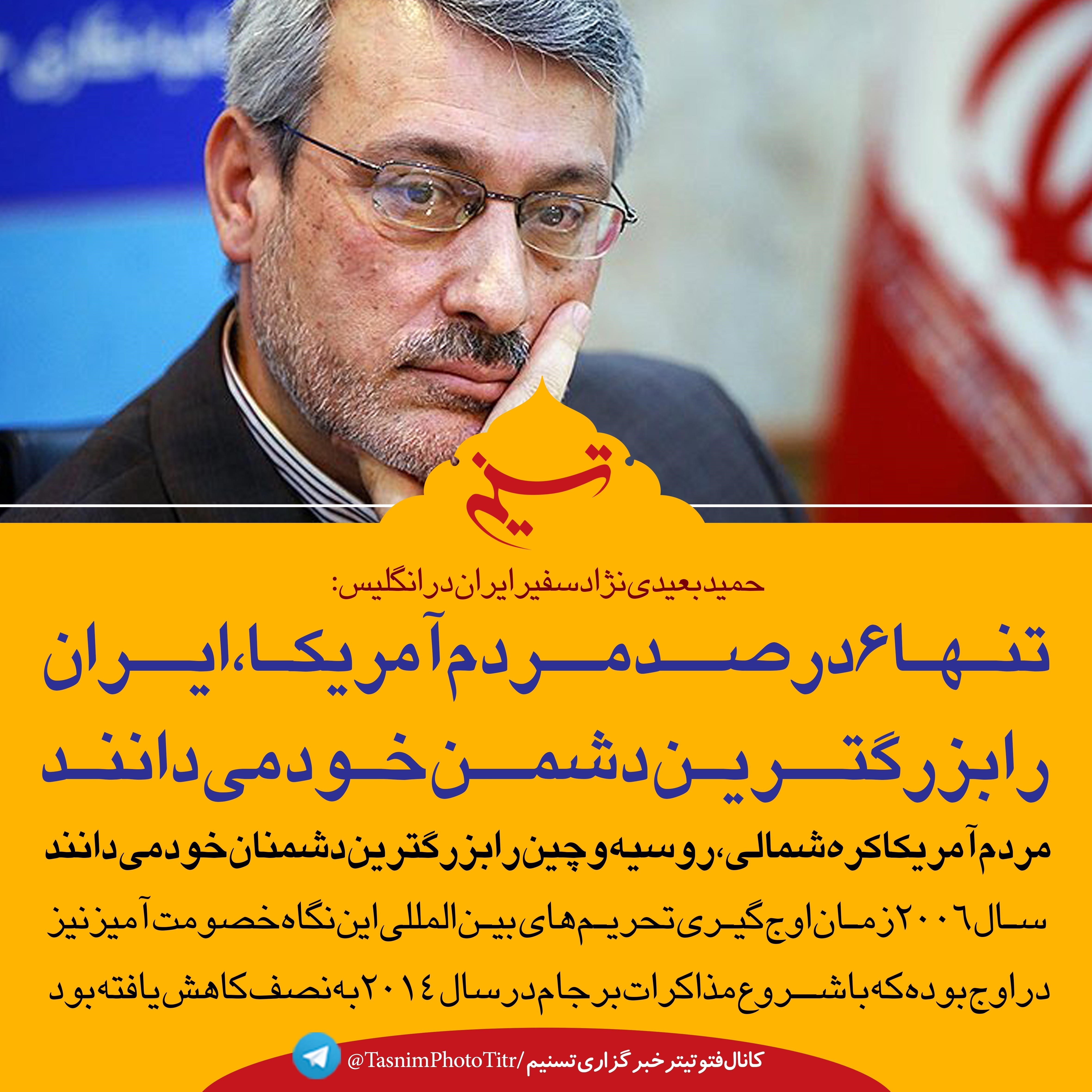 فتوتیتر| بعیدی نژاد: تنها 6 درصد مردم آمریکا، ایران را بزرگترین دشمن خود می‌دانند