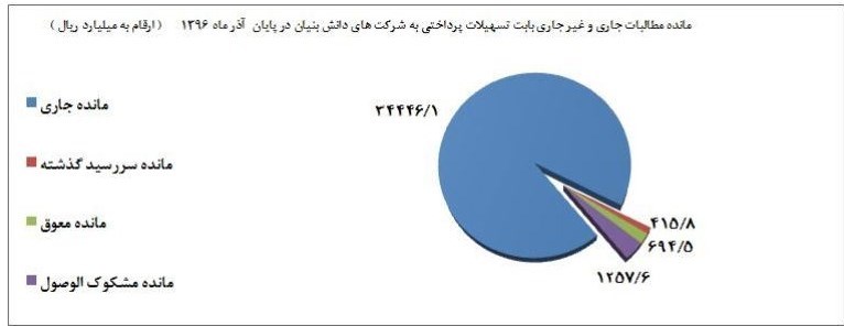 مانده مطالبات بانکها بابت تسهیلات پرداختی به شرکتهای دانشبنیان در پایان آذر ماه 1396
