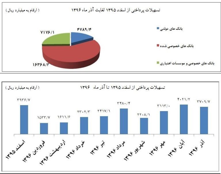 میزان تسهیلات پرداختی طی آذر ماه 1396