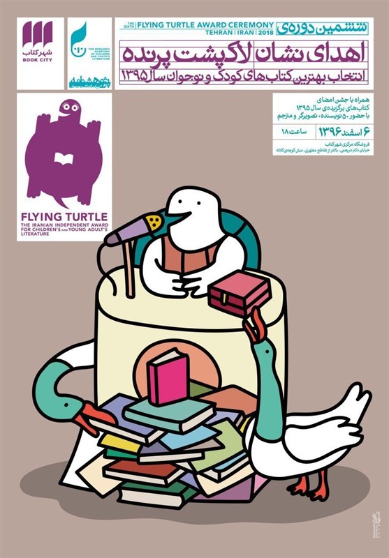 به گزارش باشگاه خبرنگاران پویا، ششمین دوره لاکپشت پرنده با حضور گلی امامی، محمود برآبادی، مهدی فیروزان، مژگان امجد و اعضای هیئت داوران جایزه لاکپشت پرنده روز گذشته، 6 اسفند در شهر کتاب مرکزی برگزار شد. این آیین در حالی برگزار شد که جمع زیادی از کودکان و خردسالان با لباسهای رنگی و گوناگون برگرفته از شخصیتهای مختلف داستانی مانند شنل قرمزی، شازده کوچولو و پری مهربان در سالن حضور داشتند.