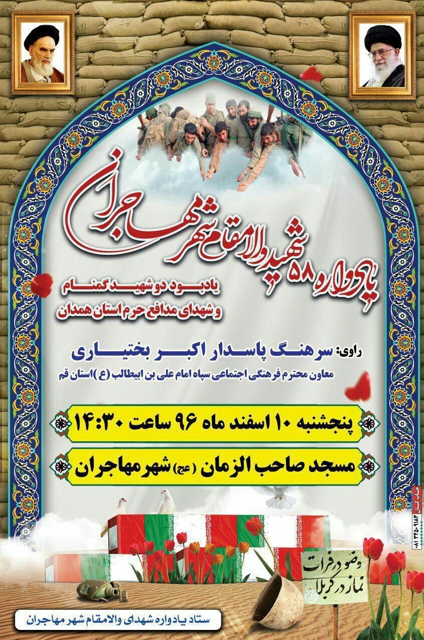 همدان|یادواره 58 شهید و 3 سردار رشید شهر مهاجران  برگزار می‌شود