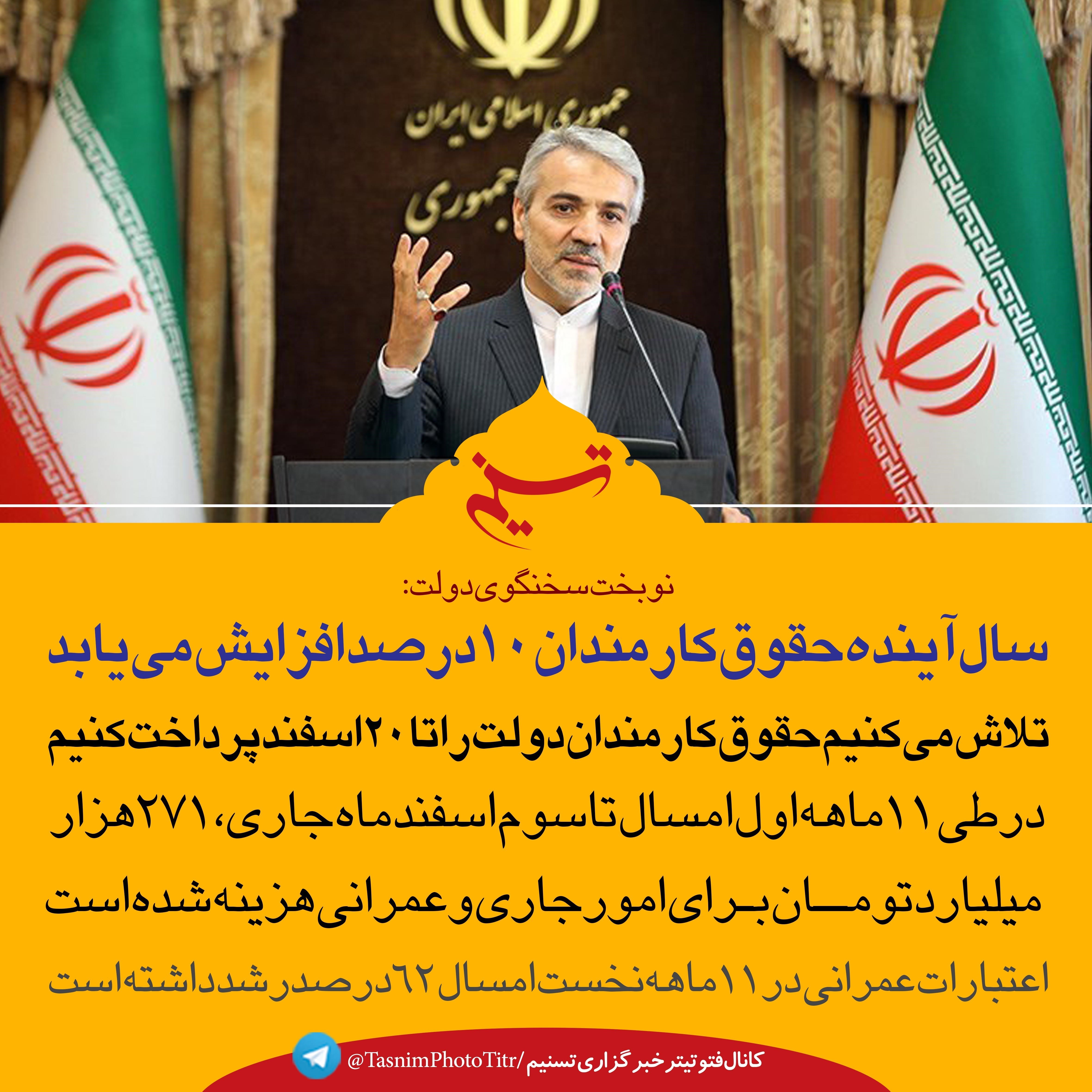 فتوتیتر|نوبخت: سال آینده حقوق کارمندان 10 درصد افزایش می‌یابد