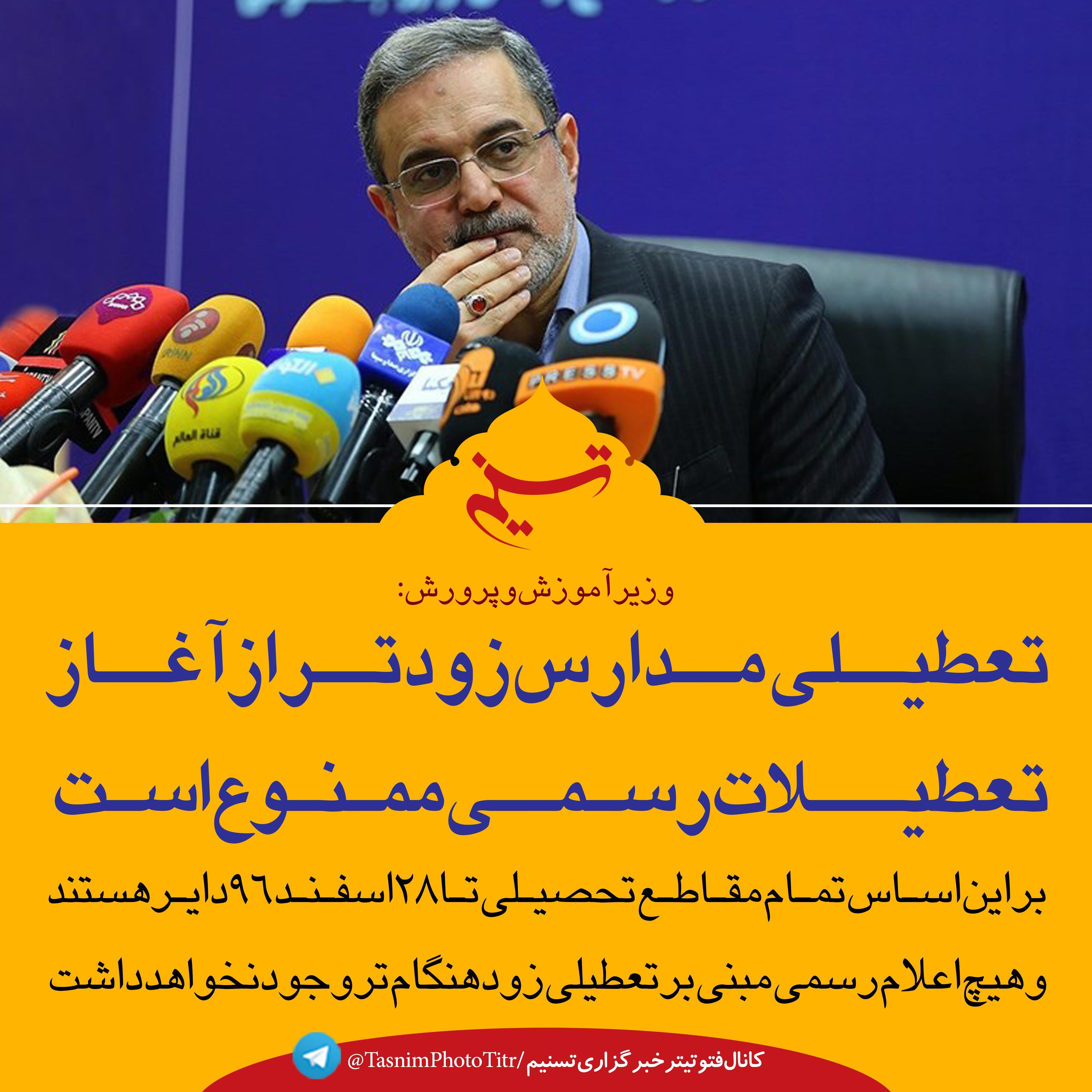 فتوتیتر| تعطیلی مدارس زودتر از آغاز تعطیلات رسمی ممنوع است