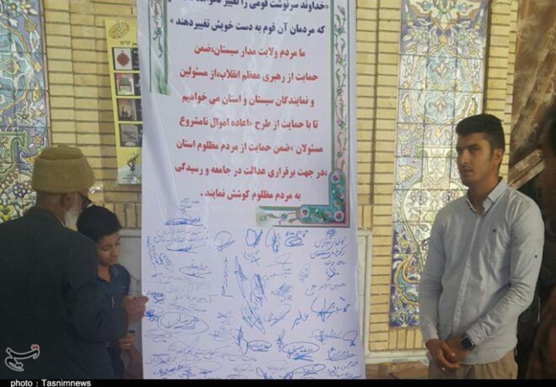 ما مردم ولایت مدار سیستان ضمن حمایت از رهبری معظم انقلاب از مسئولان و نمایندگان سیستان و استان می‌خواهیم تا با حمایت از طرح «اعاده اموال نامشروع مسئولان » ضمن حمایت از مردم مظلوم استان در جهت برقراری عدالت در جامعه و رسیدگی به مردم مظلوم کوشش کنند.