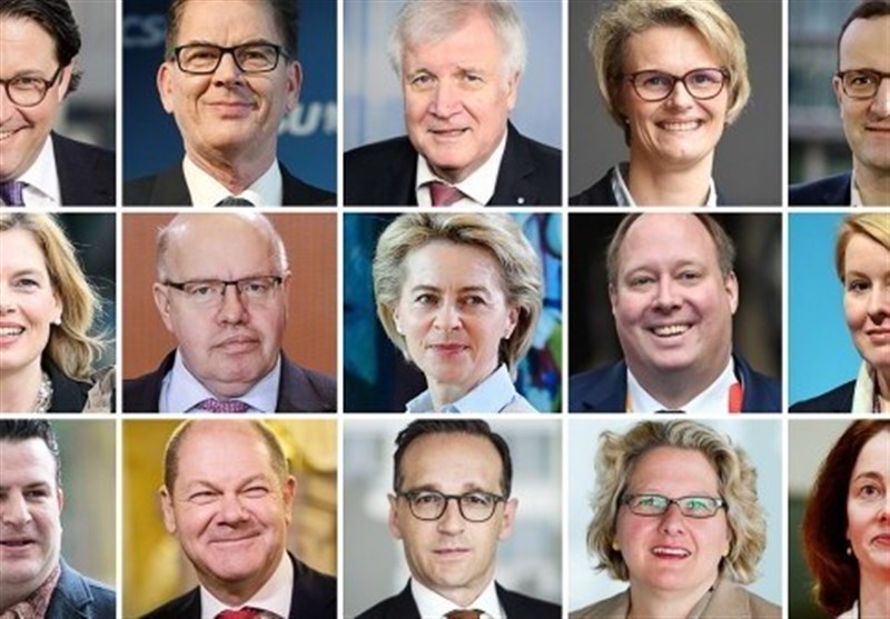 به گزارش گروه بین الملل خبرگزاری تسنیم به نقل از روزنامه "زوددویچه سایتونگ"، حدود 165 روز بعد از انتخابات پارلمانی آلمان بالاخره بعد از توافق احزاب متحد مسیحی و سوسیال دموکرات روی قرارداد ائتلاف بزرگ، وزرای کابینه دولت آینده مرکل معرفی و مشخص شدند.