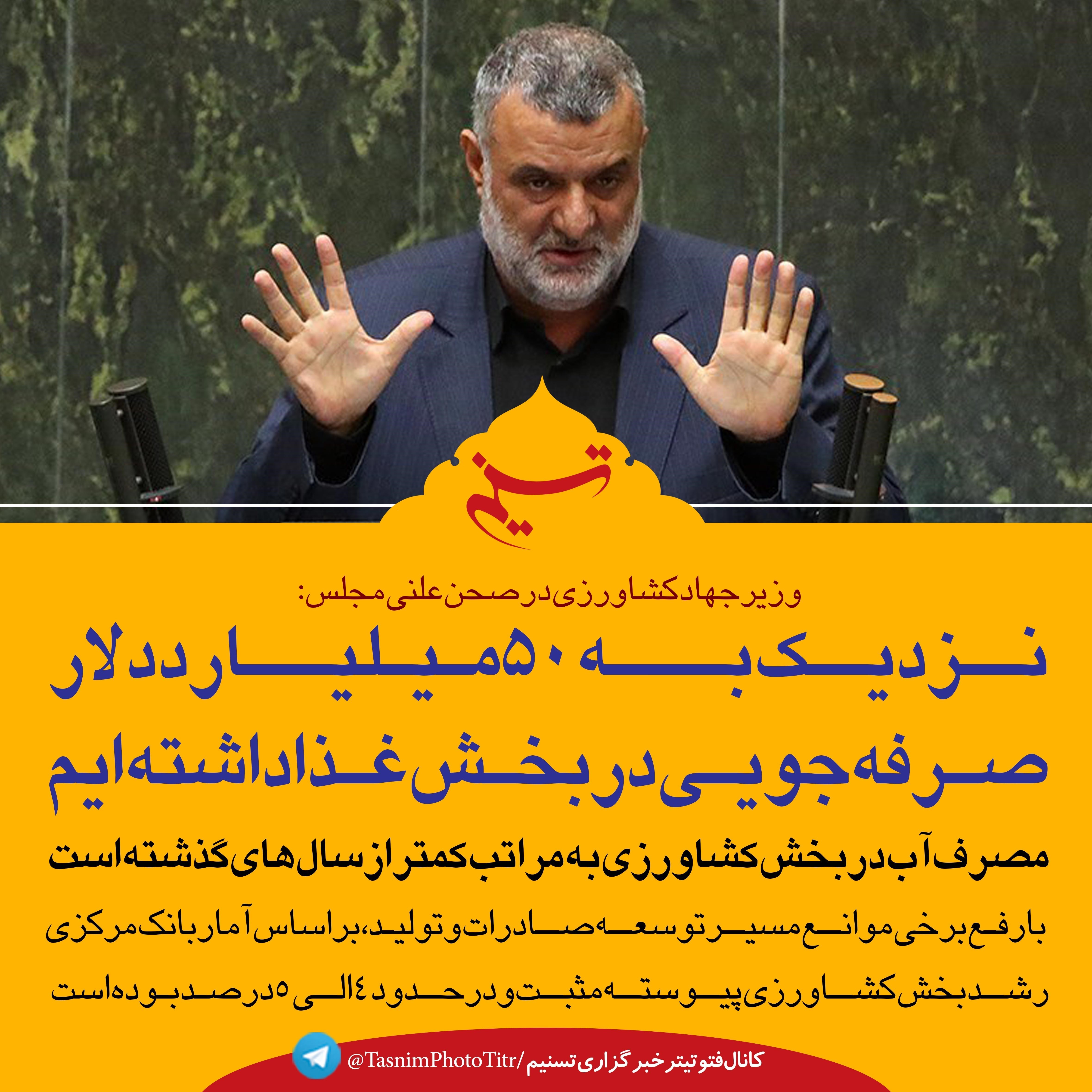 فتوتیتر|حجتی: نزدیک به 50 میلیارد دلار صرفه‌جویی در بخش غذا داشته‌ایم