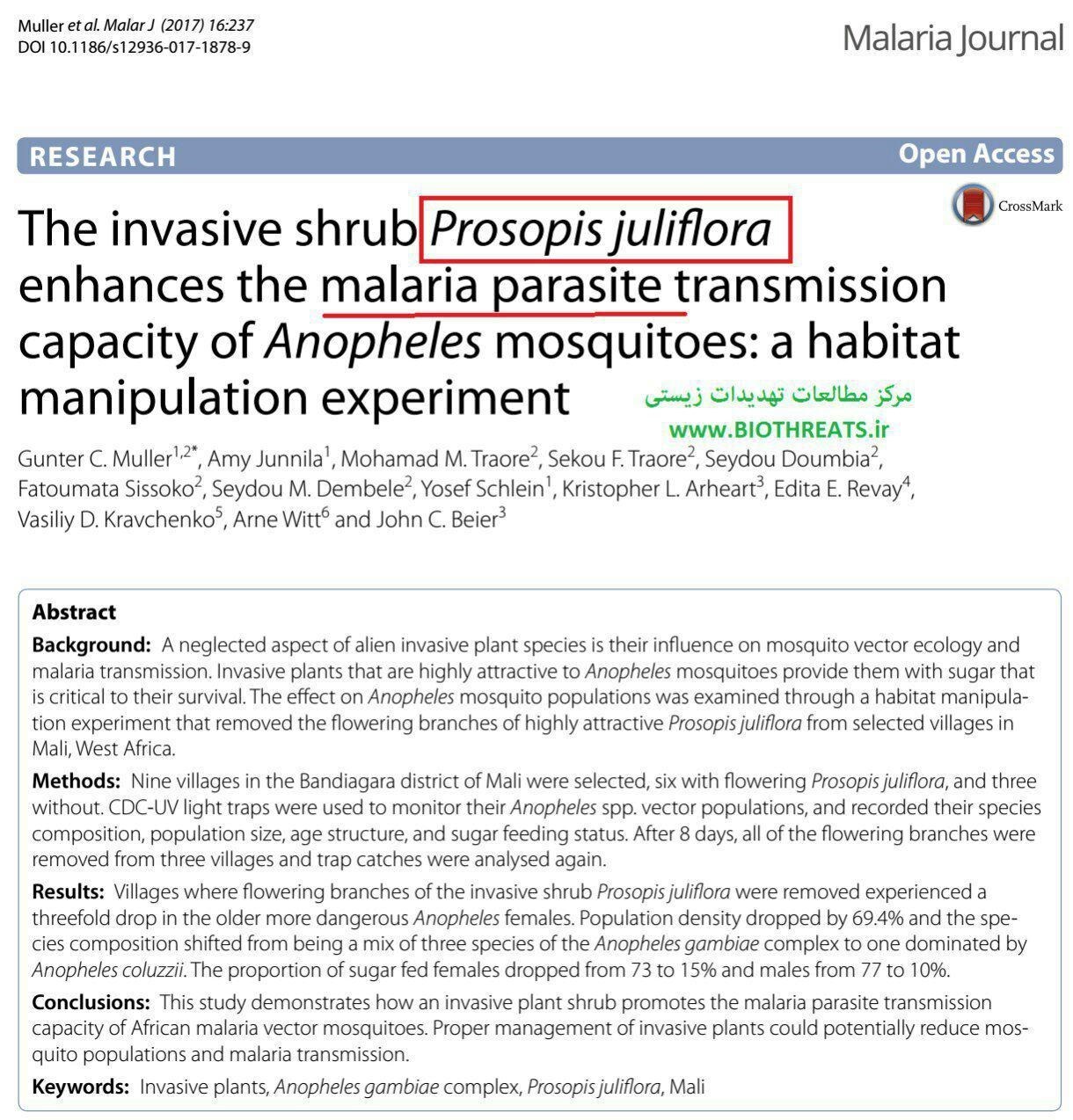 اما بر اساس تحقیقات ١٣ محقق از ٦ کشور جهان، کاشت کهور میتواند عامل بازگشت مالاریا باشد؛ گیاه کهور آمریکایی (Prosopis juliflora) جاذب "پشه آنوفل" است که این پشه ناقل مالاریا محسوب میشود.