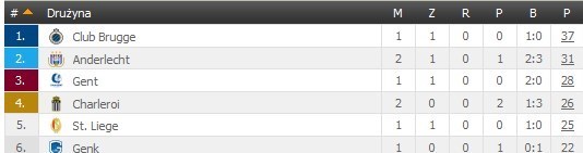 در تصویر زیر جدول رده‌بندی گروه قهرمانان ژوپیلر لیگ بلژیک را مشاهده می‌کنید که تیم شارلوا در رده چهارم قرار دارد: