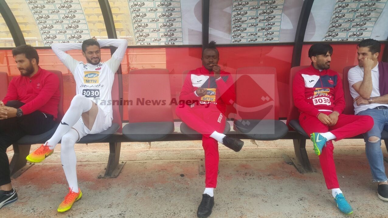 *  بازیکنان نیمکت نشین پرسپولیس قبل از آغاز بازی روی نیمکت مستقر شدند که در این بین همانطور که در تصویر زیر مشاهده می‌کنید منشا مشغول تخمه خوردن بود.
