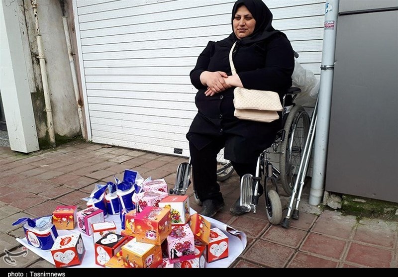 به گزارش خبرگزاری تسنیم از رشت، در شلوغی بازار شب عید و شتاب مردم برای پایان سال در یکی از خیابانهای اصلی شهر رشت که بسیار پر رفت و آمد است، بانویی با معلولیت جسمی حرکتی را یافتیم که بر روی ویلچر نشسته و دستفروشی میکند.