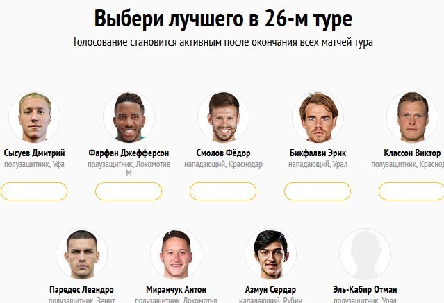 به گزارش خبرگزاری تسنیم، خبرگزاری ورزشی چمپیونات روسیه نامزدهای برترین بازیکن هفته بیستوششم لیگ برتر فوتبال این کشور را اعلام کرد که نام سردار آزمون نیز در میان آنها دیده میشود. انتخاب نامزدها و برترین بازیکن هفته با مشارکت مستقیم آرای کاربران و کمیسیون مشترکی از روزنامهنگاران ورزشی انجام میشود.