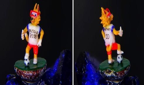 به گزارش خبرگزاری تسنیم، ولادیمیر آنیسکین تصویر سهبعدی از زابیواکا (نماد جام جهانی 2018)، آرم رقابتها و توپ فوتبال را روی یک دانه گندم حکاکی کرد.