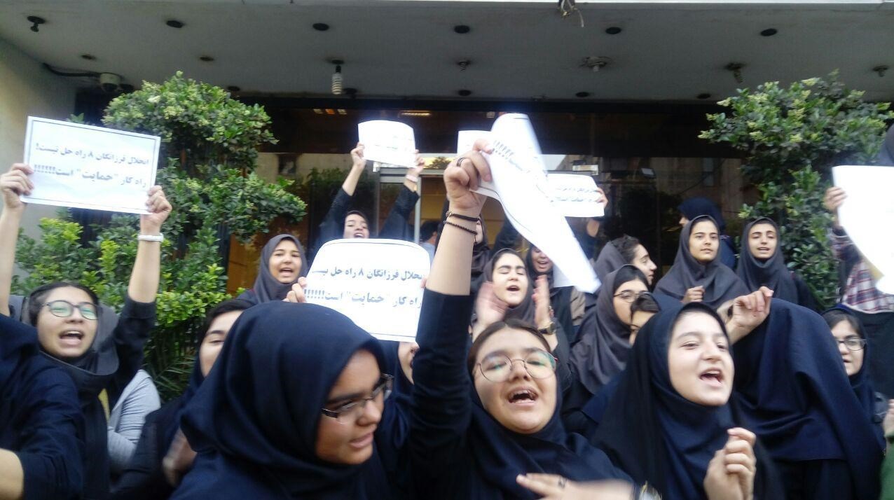 به گزارش خبرنگار اجتماعی خبرگزاری تسنیم، جمعی از دانشآموزان مدرسه سمپاد فرزانگان 8 امروز در مقابل وزارت آموزش و پرورش تجمع کرده بودند، این دانشآموزان که تعدادشان 30 تا 40 نفر بود در اعتراض به انحلال مدرسه خود مقابل وزارت آموزش و پرورش حضور یافتند و با شعارهای همچون "ما نخبگان کشوریم از حقمان نمیگذریم" و "انحلال فرزانگان 8 راه حل نیست، راهکار حمایت است"، از مسئولان آموزش و پرورش تقاضای تغییر نظر در تصمیم خود داشتند.