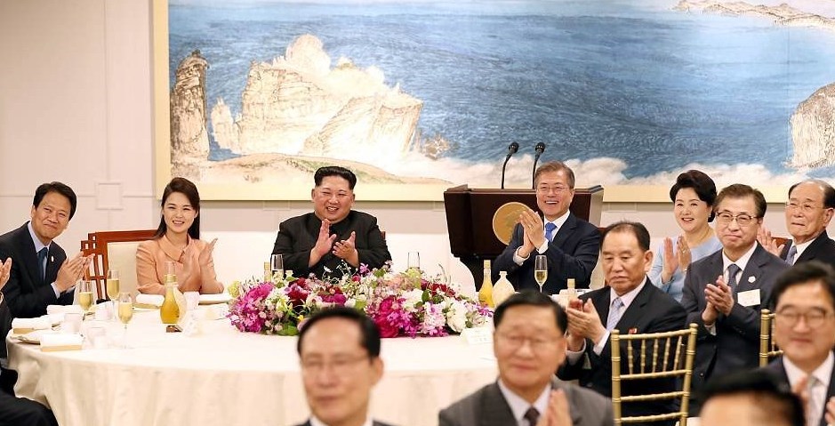 این تصویر پیش از ضیافت شام سران دو کره گرفته شده است.