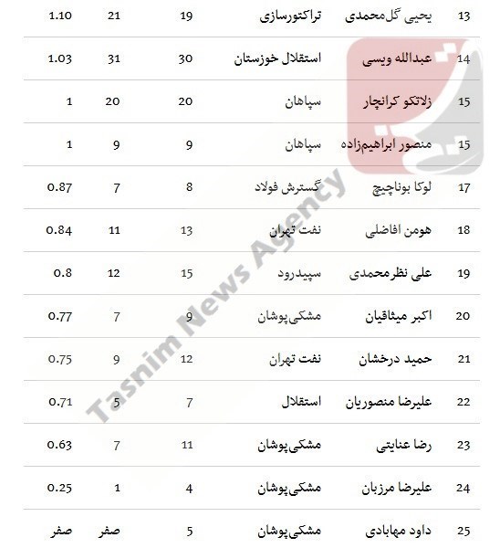 به گزارش تسنیم، میک مک‌درموت، امید روانخواه، آرمین رهبر، آتیلا حجازی، کریم قنبری، مجتبی حسینی و احمد آل‌نعمه، مربیانی بودند که یک یا دو دیدار به عنوان سرمربی روی نیمکت تیم‌های خود نشستند. همچنین در این جدول، 6 امتیاز کسر شده از تیم پدیده به دلیل حکم کمیته انضباطی فیفا منظور نشده است.