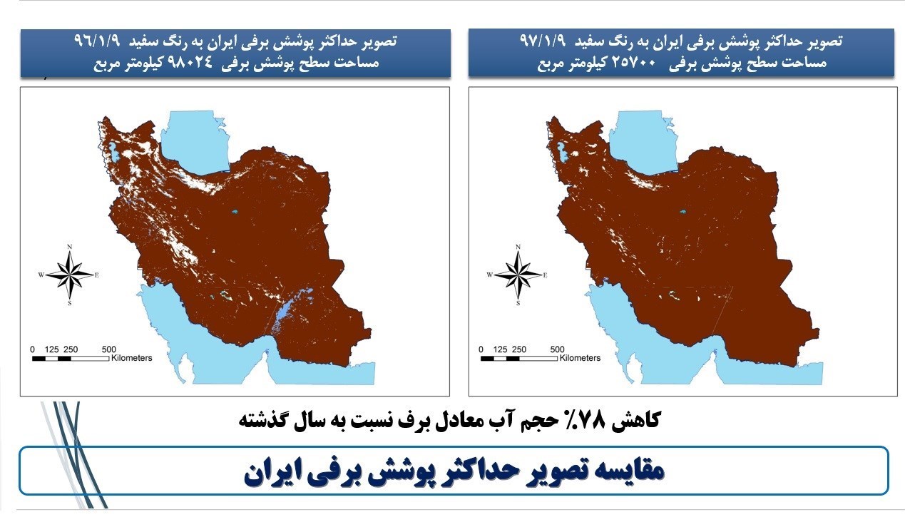 کاهش 78 درصدی حجم آب معادل برف و کاهش حدوداً 73 درصدی سطح پوشش برفی نسبت به زمان مشابه سال گذشته در حالی است که حجم باران های کشور نیز با کاهش حدوداً 39 درصدی نسبت به زمان مشابه سال قبل مواجه است. نیمی از حجم ظرفیت 50 میلیارد مترمکعبی سدهای کشور در حال حاضر خالی است و تنها امید برای جبران بخشی از کمبود بارش ها، در 20 روز باقی مانده از اردیبهشت و روزهای ابتدایی خرداد است که با توجه به آمار، بعید به نظر می رسد بارش های سال آبی جاری که تا امروز حدود 129 میلیمتر است، تا پایان شهریورماه 97 (پایان سال آبی 97-96) به 150 میلیمتر نیز برسد.