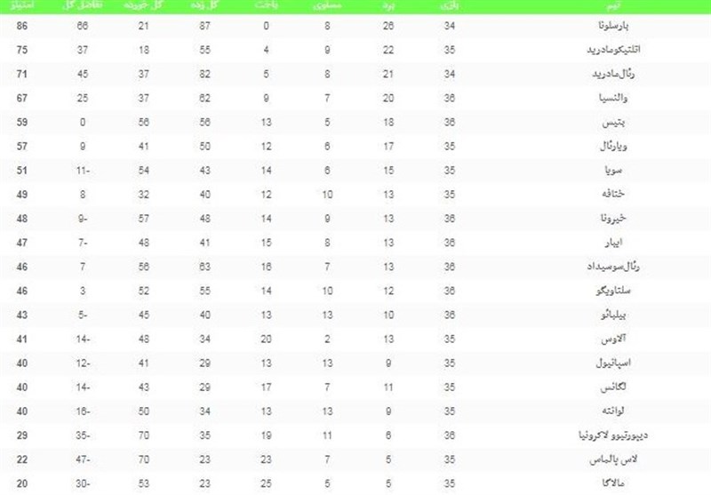 جدول ردهبندی لالیگا را در زیر مشاهده کنید.