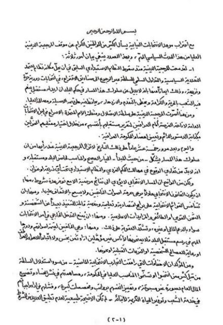 بهعبارت دیگر مرجعیت دینی عراق مشارکت یا عدم مشارکت در انتخابات را بهعهده خود فرد قرار داده، اما این نکته را یادآوری کرده که نباید در انجام حق انتخاب سهلانگاری صورت گیرد.