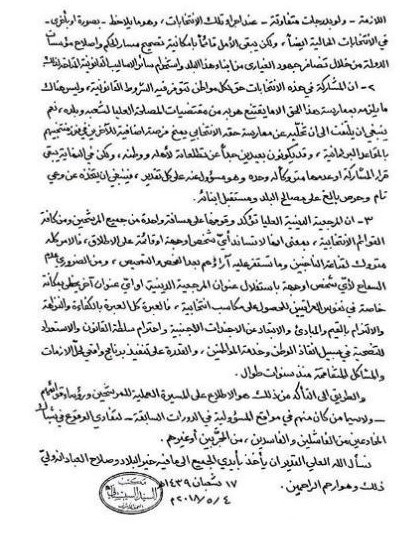 مشارکت در این انتخابات حق طبیعی تمام شهروندانی است که شرایط قانونی نزد آنها وجود دارد. بر اساس این بیانیه الزامی برای استفاده از این حق وجود ندارد، مگر اینکه استفاده از آن بخشی از مقتضیات منافع عالی ملت و کشور است. تصمیم به مشارکت یا عدم مشارکت در انتخابات بهعهده خود فرد است و هر فردی مسئول تصمیمگیری خود است، بنابراین باید با هوشیاری کامل و اصرار درباره منافع کشور و آینده هموطنان تصمیم خود را بگیرد.