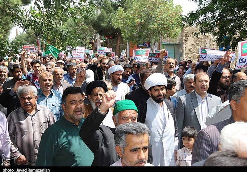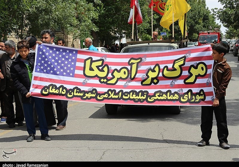 به گزارش خبرگزاری تسنیم از دامغان, مردم دیار عالمان و شهیدان دامغان همراه و همزمان با هم استانی های خود پس از حضور در نماز باشکوه جمعه امروز فاصله مصلی نماز جمعه تا میدان امام(ره) این شهرستان را راهپیمایی کردند و در حالی که بر لب شعار مرگ بر آمریکا و مرگ بر اسرائیل و در دست پلاکاردهایی در محکومیت اقدام و سخنان وقیحانه ترامپ داشتند باردیگر نفرت و انزجار خود را از دسیسه های جهانخواران عهد شکن اعلام کردند.