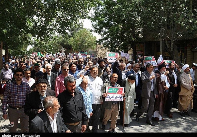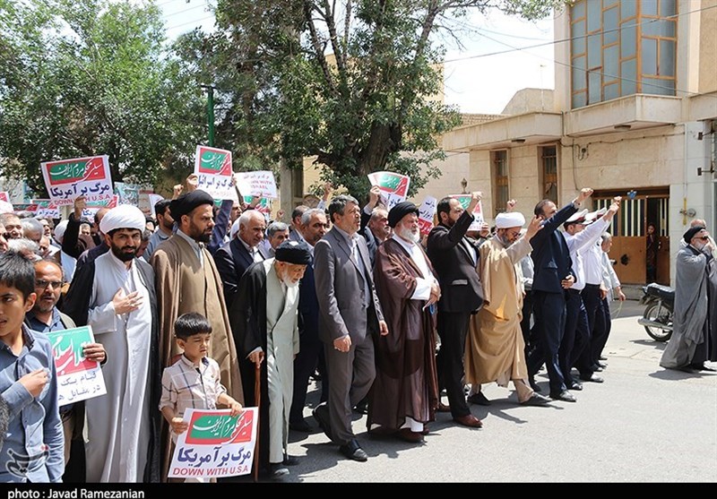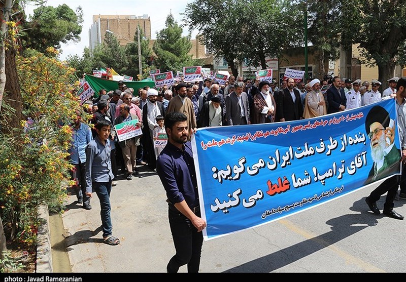 مردم بصیر و شهید پرور دامغان در واکنش به بدعهدی و عربده کشی رییس جمهور آمریکا و خروج از برجام بار دیگر در صحنه حاضر شدند و مرگ و ننگ خود را نثار جهانخواران عهد شکن و در رأس آنها شیطان بزرگ آمریکا کردند.