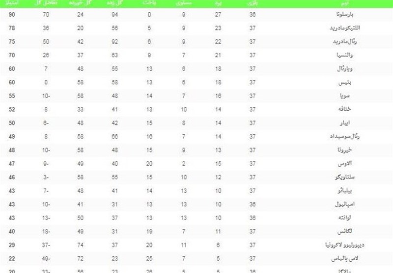 جدول ردهبندی لالیگا را زیر مشاهده کنید.