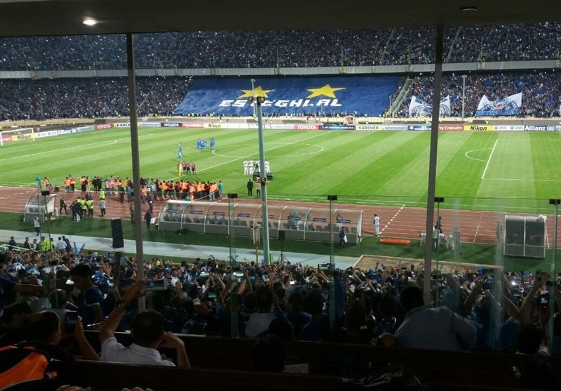 * با حضور بازیکنان برای شروع بازی، هواداران استقلال پرچمهای بزرگی را به اهتراز در آوردند.