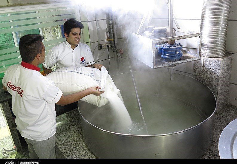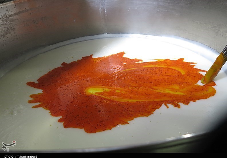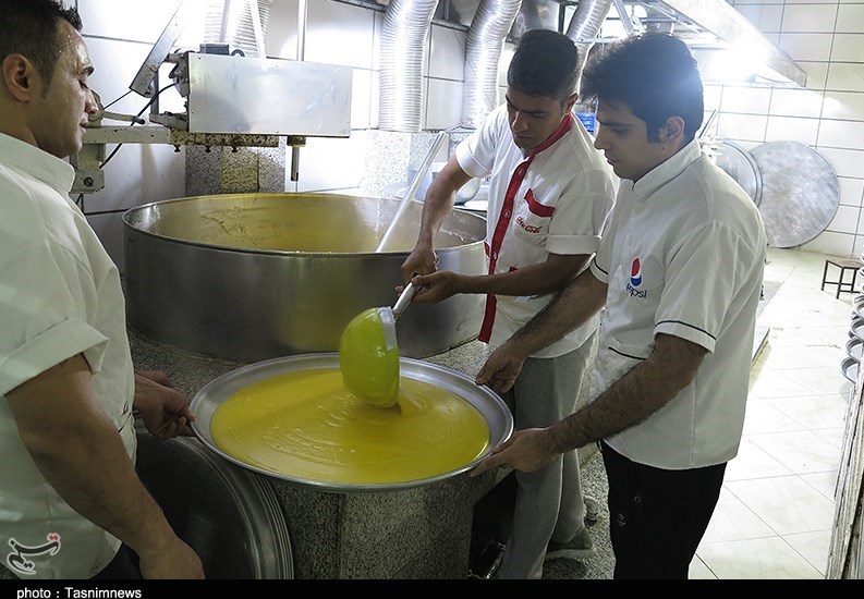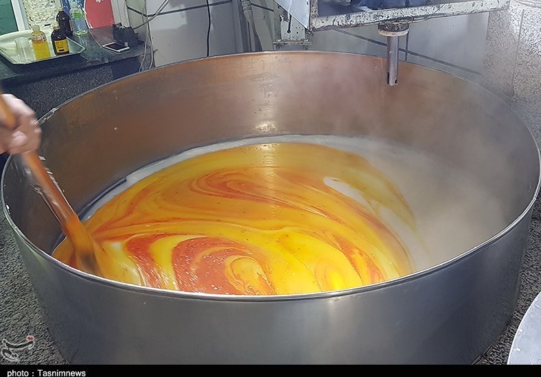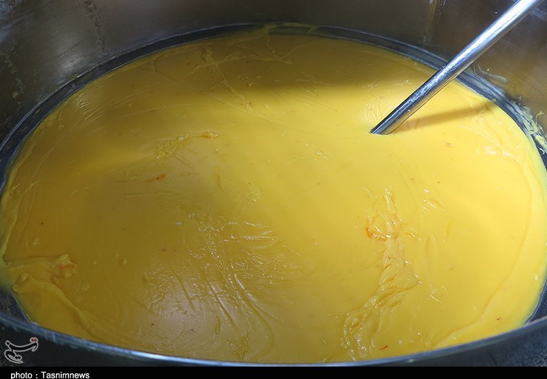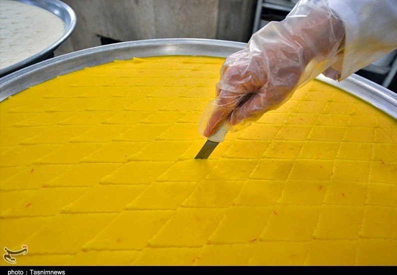 پخت این حلوا از بعد از افطار تا نیمههای شب، گاه تا نزدیکیهای صبح ادامه دارد. بعد از پخت حلوا را در سینیهای بزرگ ریخته و بعد از گذشت شش تا 8 ساعت پس از خنک شدن، حلوا را بهصورت قطعات لوزیشکل بریده و عرضه میکنند.