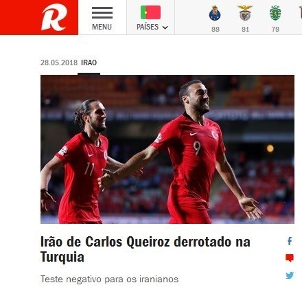 در همین حال نشریه رکورد پرتغال هم بازی ایران و ترکیه را زیر ذرهبین برده است و درباره آن نوشته است:« ایران کیروش در ترکیه باخت؛ محکی منفی برای ایرانیها».