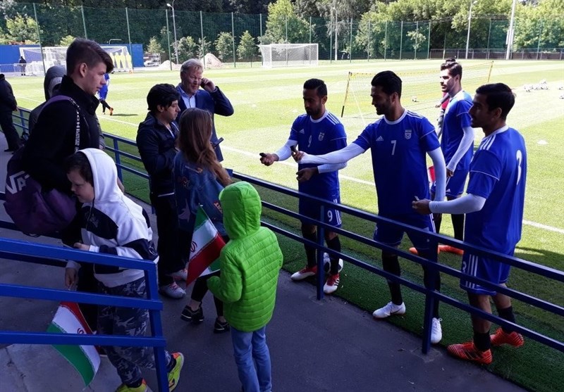 به گزارش خبرنگار اعزامی خبرگزاری تسنیم از روسیه، هواداران امروز اجازه داشتند تا از نزدیک تمرین تیم ملی را ببینند. حدود 200 هوادار در کمپ تمرینی حضور یافتند و به تشویق ملیپوشان پرداختند.