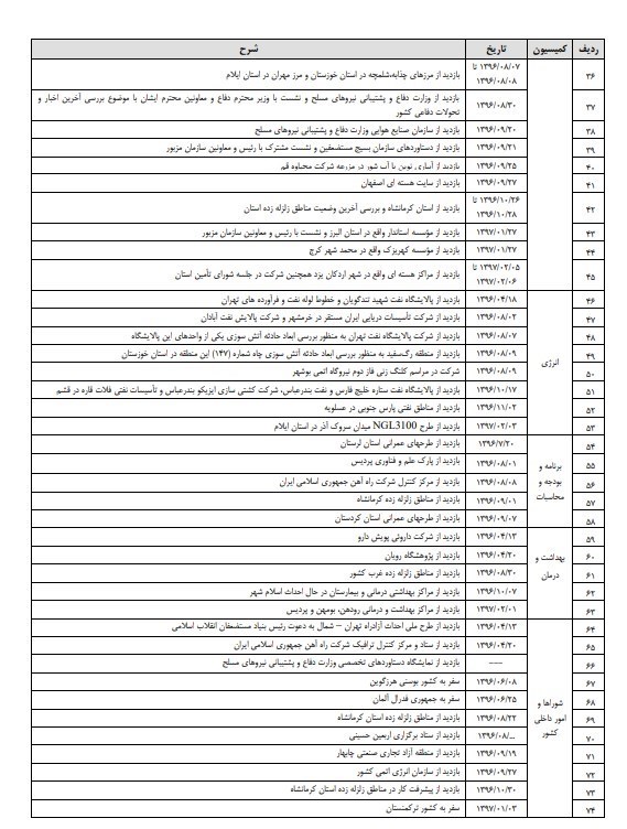 در بخشی از این گزارش به سفرها و بازدیدهای کمیسیونهای تخصصی پرداخته شده است.