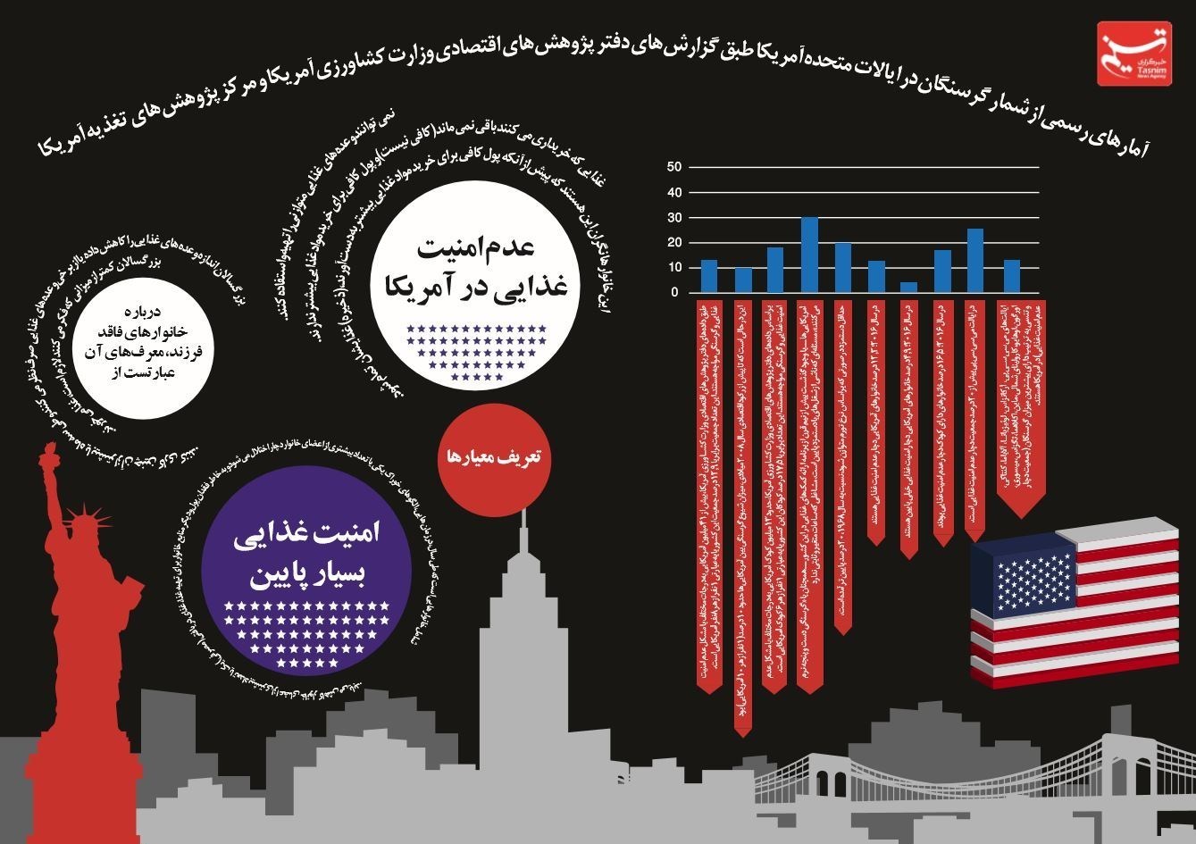 به گزارش گروه بینالملل خبرگزاری تسنیم، آمارهای رسمی ارائه شده از سوی دفتر پژوهشهای اقتصادی وزارت کشاورزی آمریکا نشان میدهد که بیش از 41 میلیون شهروند این کشور از عدم امنیت غذایی رنج میبرند.