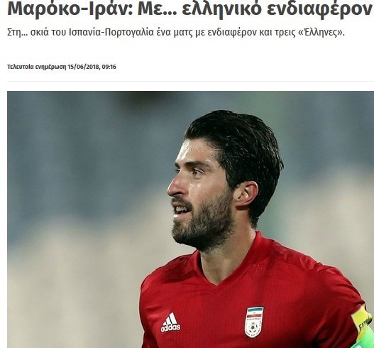 این رسانه یونانی در ادامه آورده است: نبیل ضرار در ترکیب مراکش حضور ندارد و ایران نیز سعید عزتاللهی را به دلیل محرومیت در اختیار نخواهد داشت. تردیدهایی نیز درباره بازی مهدی طارمی و اشکان دژاگه وجود دارد. به احتمال زیاد 3 ملیپوش ایرانی شاغل در سوپر لیگ یونان شامل کریم انصاریفرد، مسعود شجاعی و احسان حاجصفی در ترکیب اصلی حضور مییابند. تیمهای ملی فوتبال ایران و مراکش برای نخستینبار در جام جهانی به مصاف هم میروند.