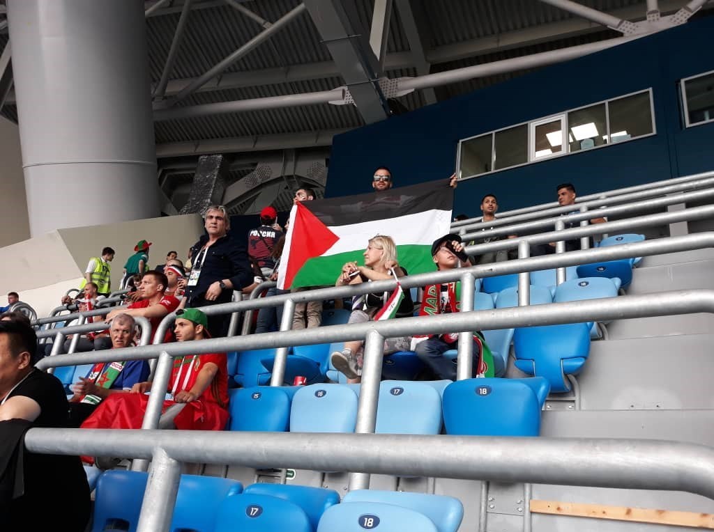 *در بین تماشاگران حاضر در ورزشگاهی یکی از تماشاگران در حمایت از فلسطین با پرچم این کشور اشغالی در ورزشگاه حضور دارد.