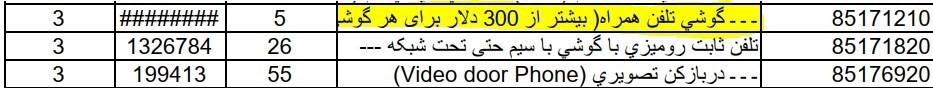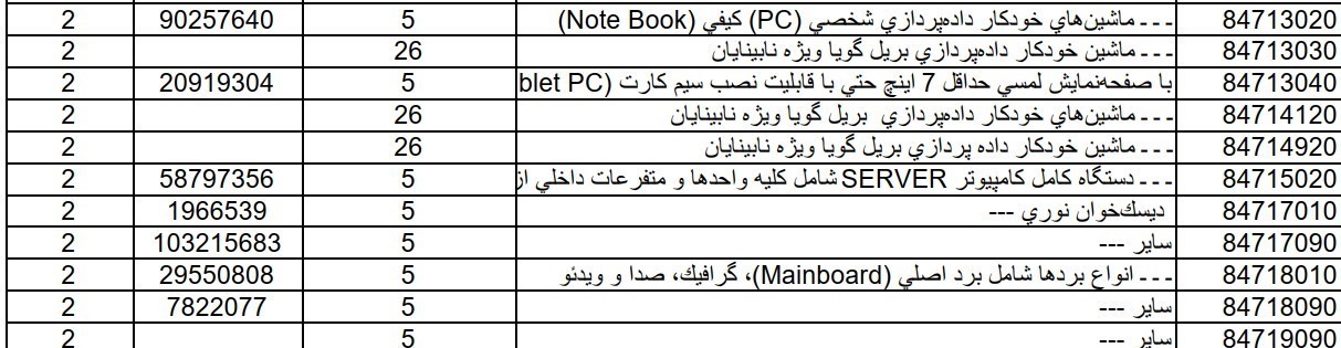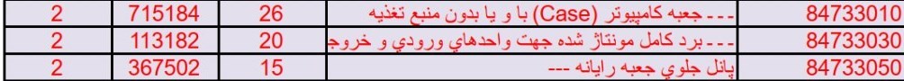 در این لیست نیز ردیفهای زیر وجود دارد: