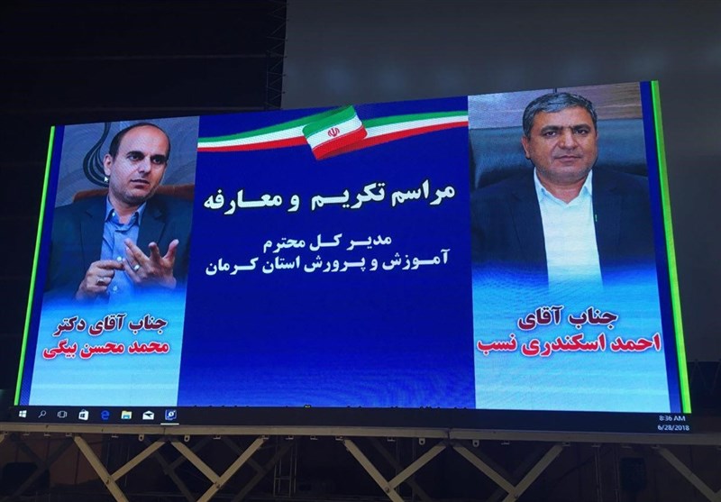 به گزارش تسنیم، در آین آئین از زحمات محمد محسنبیگی مدیرکل سابق آموزش و پرورش استان کرمان تجلیل و احمد اسکندرینسب به عنوان مدیرکل جدید آموزش و پرورش استان کرمان منصوب شد.