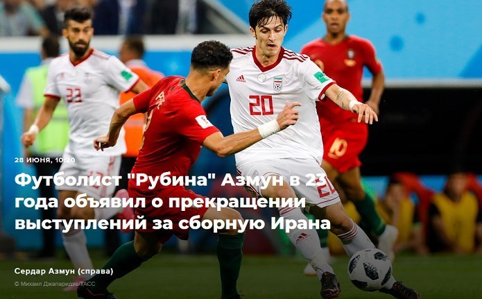 خبرگزاری ورزشی چمپیونات روسیه خبر کوتاهی در این رابطه منتشر کرد و از خداحافظی سردار آزمون، مهاجم 23 ساله روبینکازان با تیم ملی فوتبال ایران خبر داد.