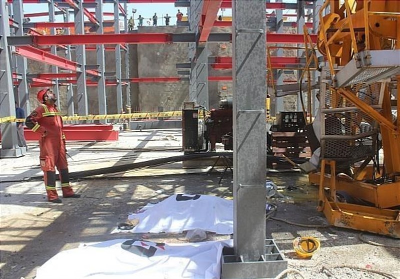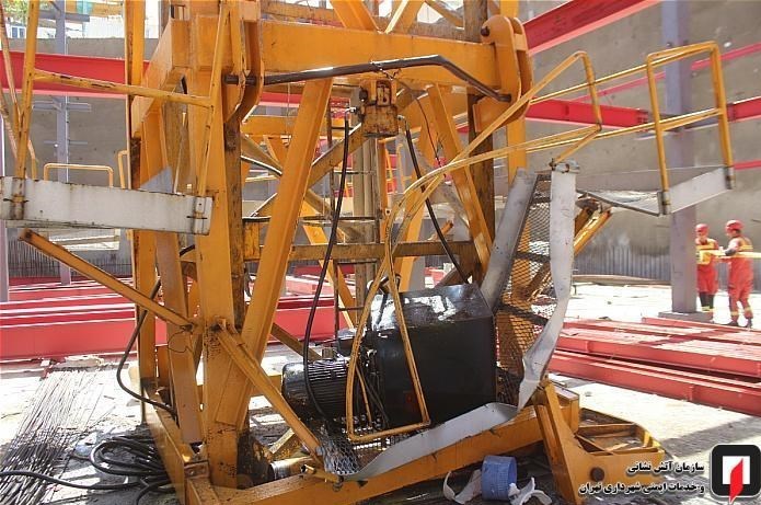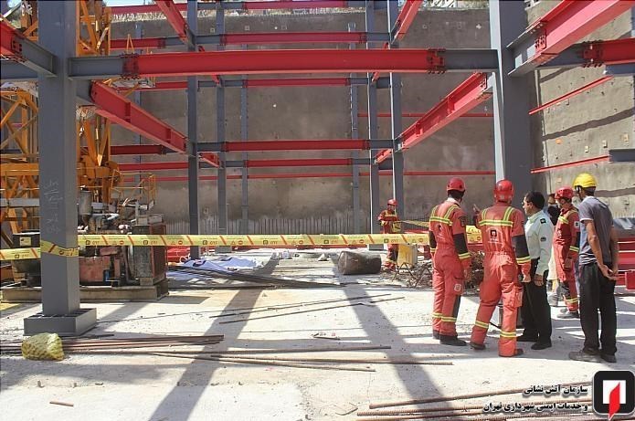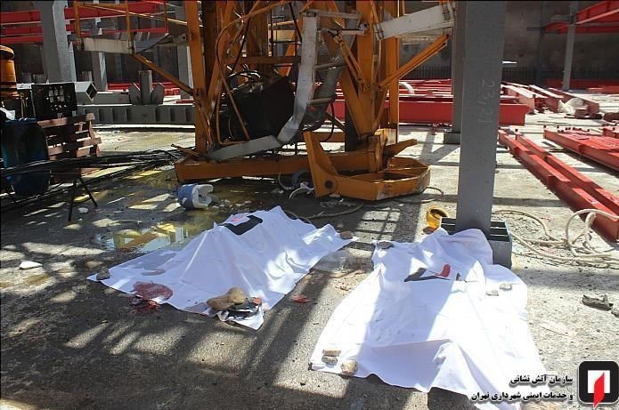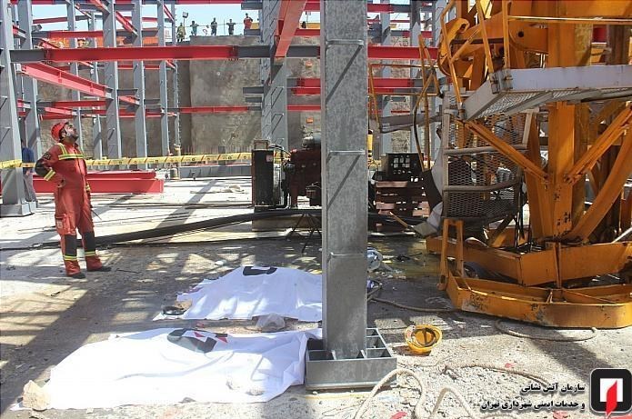 به گفته مولا کشاورز؛ رئیس ایستگاه 109 آتشنشانی تهران، دو کارگر فنی در یک پروژه بزرگ ساختمانی سرگرم نصب سازه جرثقیل ثابت تاورکرین ویژه انتقال مصالح ساختمانی درطبقات مختلف ساختمان درحال ساخت بودند که ناگهان بالابر این جرثقیل ثابت که برای ساخت سازه و بردن تجهیزات به بالا از آن استفاده میشود، به دلیل نامشخصی به پائین سقوط کرد.
